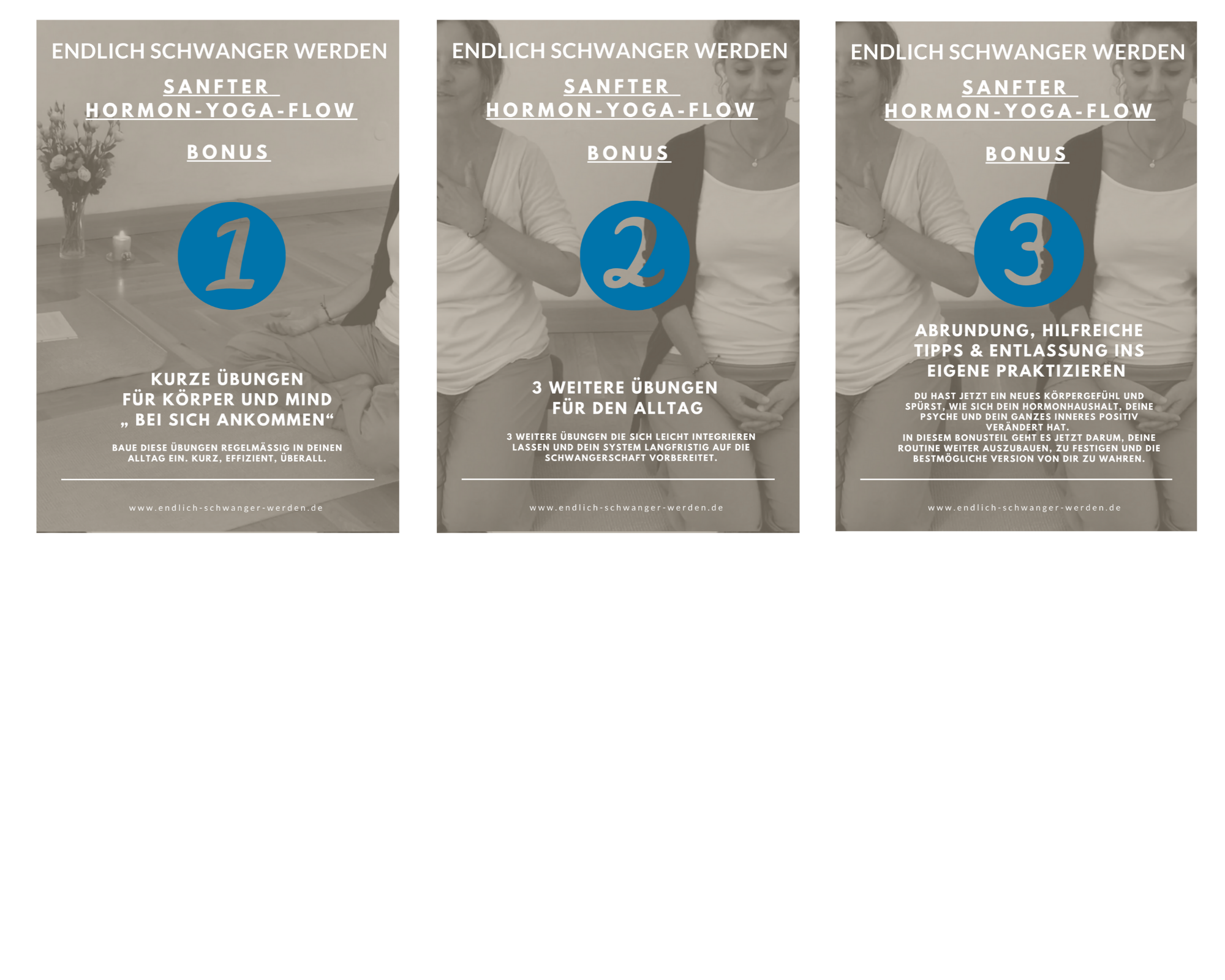 Alles in diesem Programm ist auf optimale Information und Umsetzbarkeit optimiert um viel Zeit und Frust zu sparen. Aber der "sanfte Hormon-Yoga-Flow" hat bei mir zusätzlich wahre Wunder bewirkt:-). Ich fühle mich jetzt allgemein total Wohl in meiner Haut und konnte meinen Stress bis zur Schwangerschaft einfach löschen. Wir haben jetzt unser süßes Baby, aber mein Yoga mache ich immer noch jeden Tag und will es nicht mehr missen!
